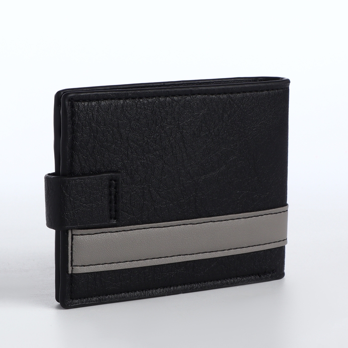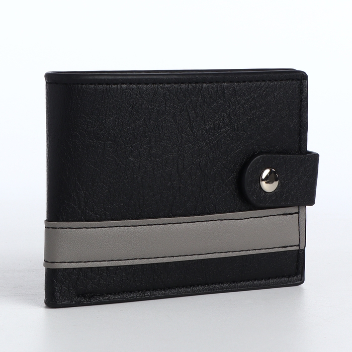 Портмоне мужское на кнопке, отдел для карт, монет, цвет чёрный