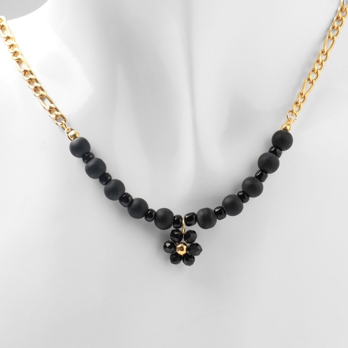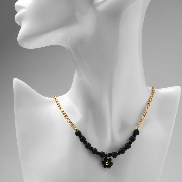 Кулон на декаративной основе «Цветок» амелия, цвет чёрный в золоте, 45см