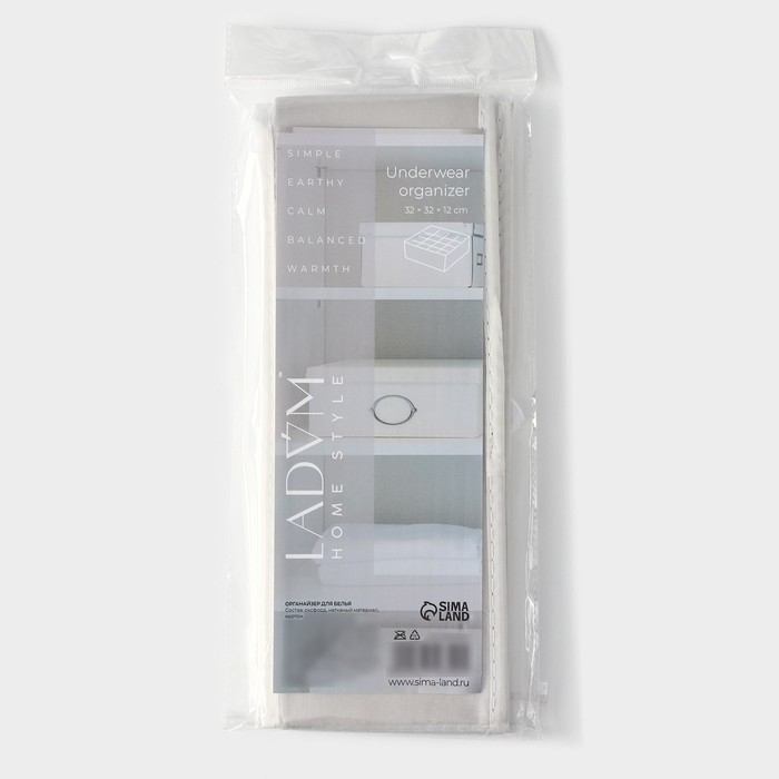 Органайзер для хранения белья LaDо́m, 16 ячеек, 32×32×12 см, цвет серый