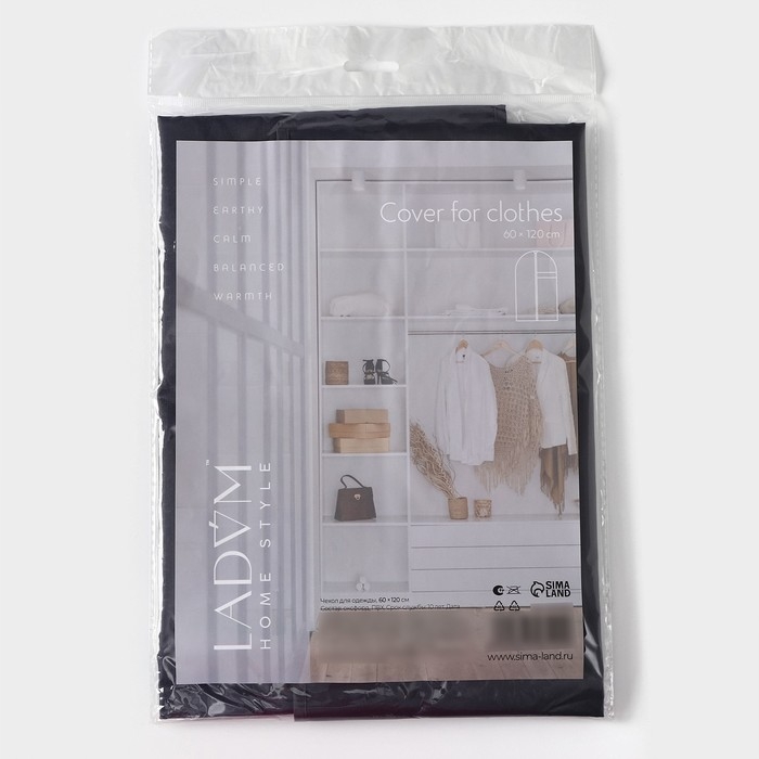 Чехол для одежды LaDо́m, ПВХ окно, плотный, 60×120 см, цвет графитовый