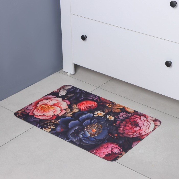 Коврик для дома Доляна Black Flowers, влаговпитывающий, 40×60 см