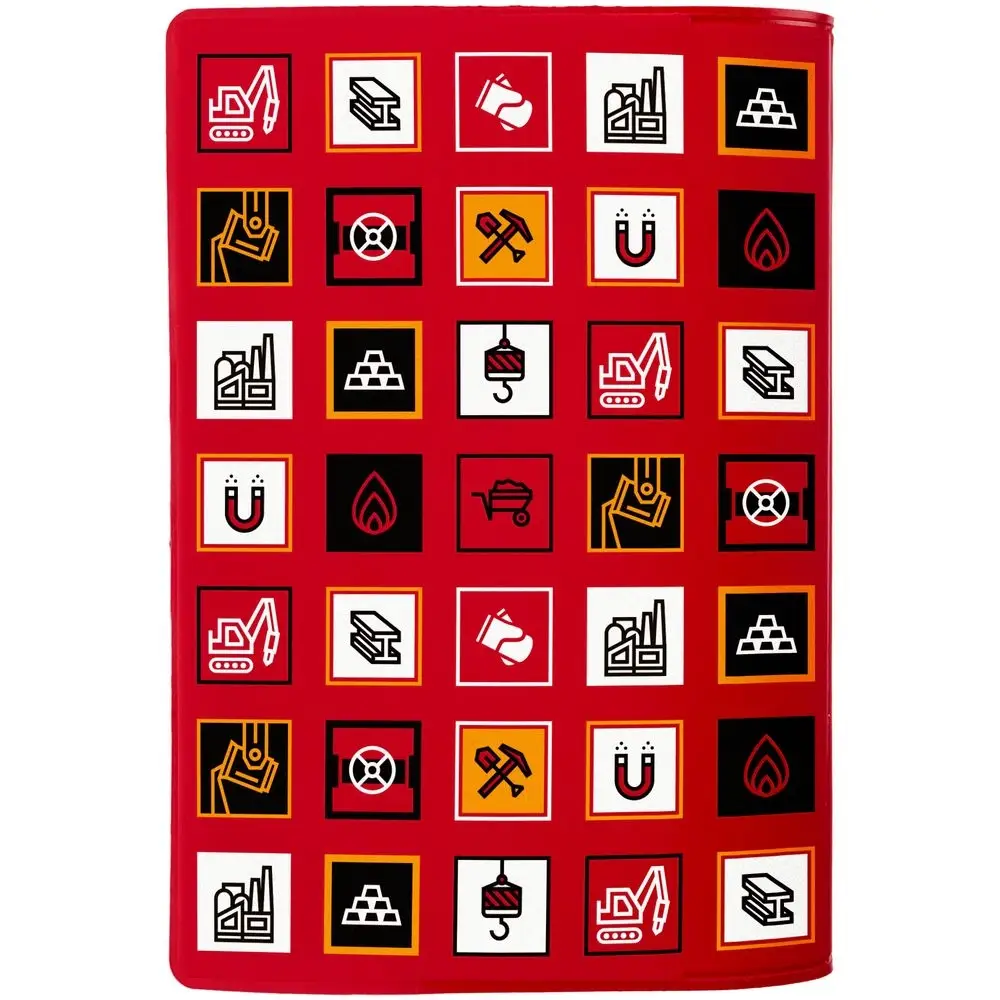 Прочный непромокаемый материал аксессуара сохранит главный документ сотрудника, а минималистичный дизайн создаст особую эстетику. В каждой части общего рисунка изображены главные символы металлургической промышленности.
