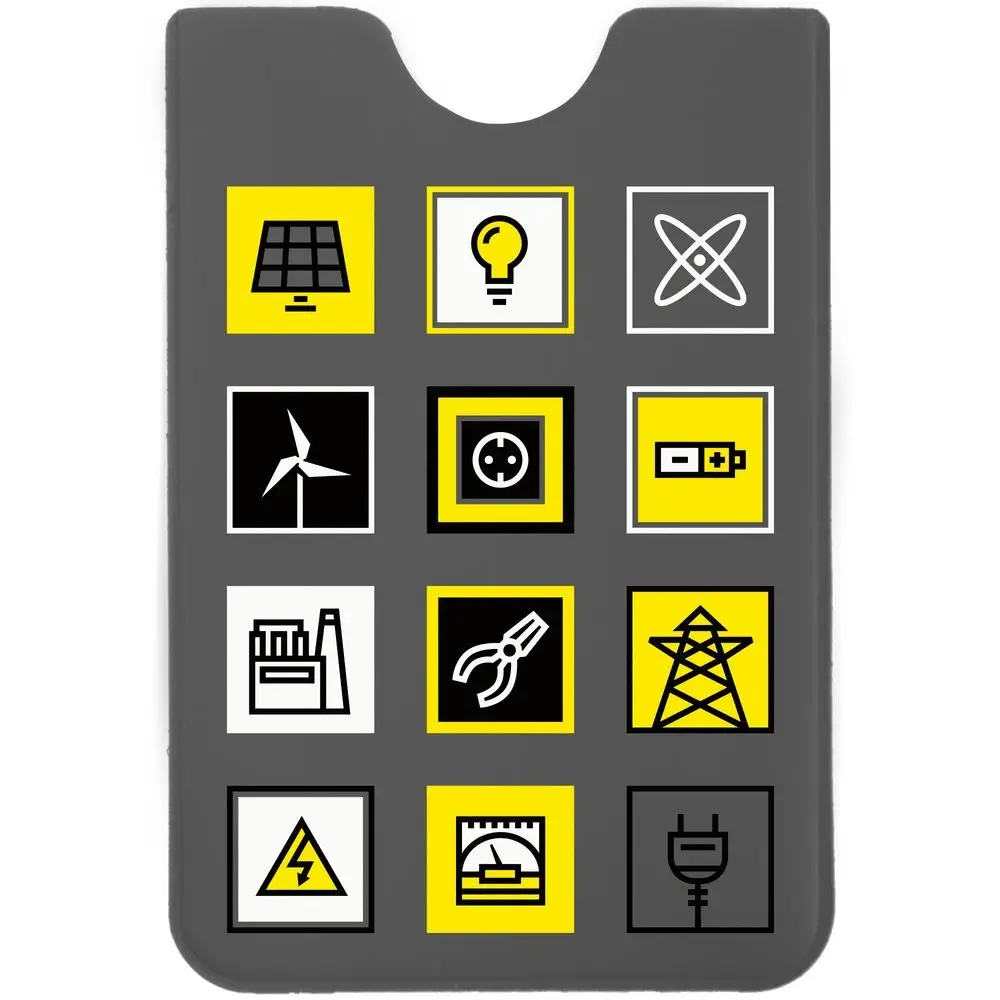 В каждой части общего рисунка изображены главные символы электроэнергетики.Футляр можно использовать для хранения пропуска, пластиковой карточки или проездного билета.