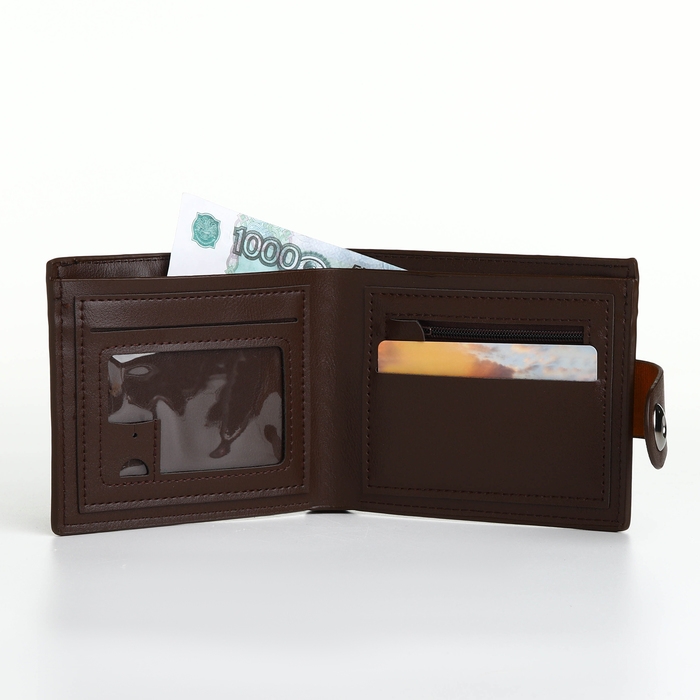 Портмоне мужское на магните, отдел для карт, монет, цвет коричневый