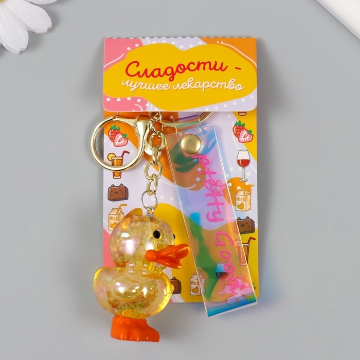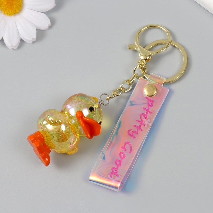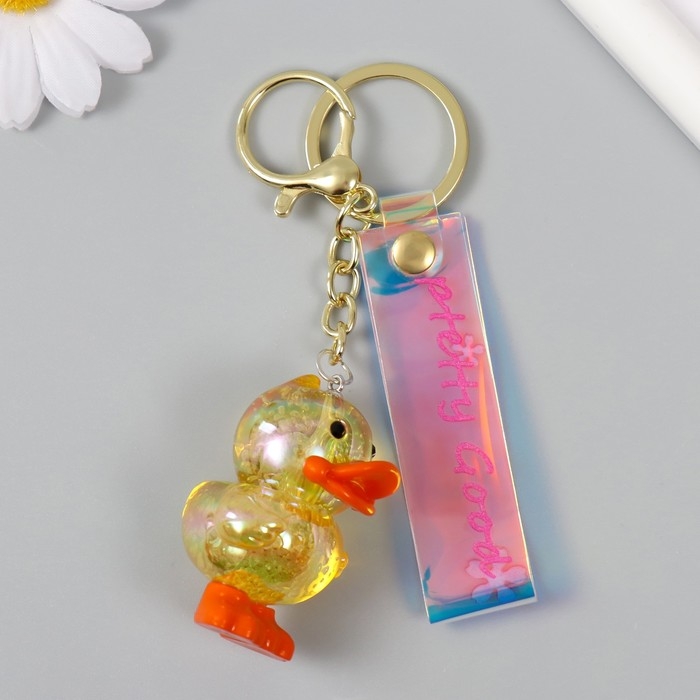 Брелок пластик с карабином, ремешком "Утёнок с блёстками" 3,3х3,7х5 см