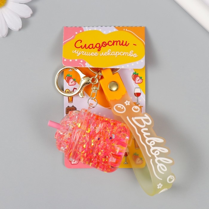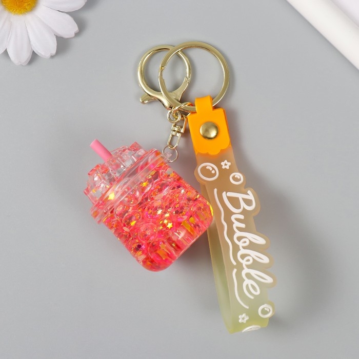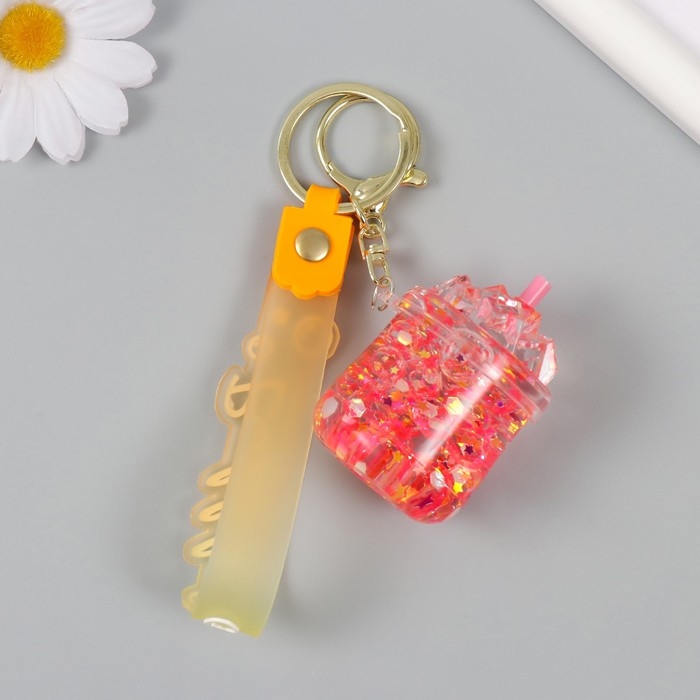 Брелок резина с карабином, ремешком "Стакан лимонада" водный с глиттером 4х6х6 см