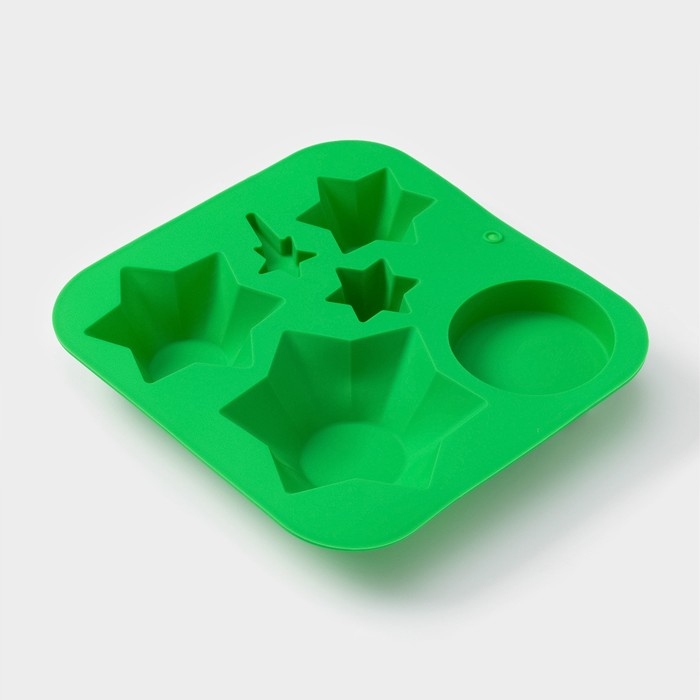 Форма для выпечки новогодняя Доляна «Новогодний набор», силикон, 20,5×22×3,5 см, 6 ячеек, цвет зелёный