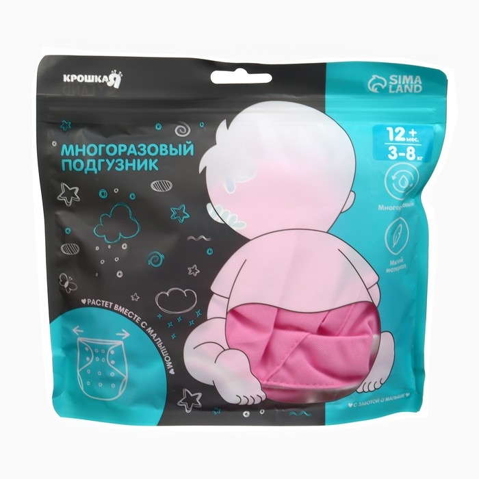 Многоразовый подгузник «Наш цветочек», 3-15 кг, цвет розовый, Крошка Я