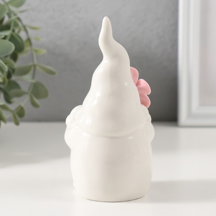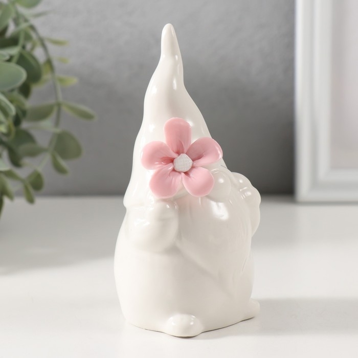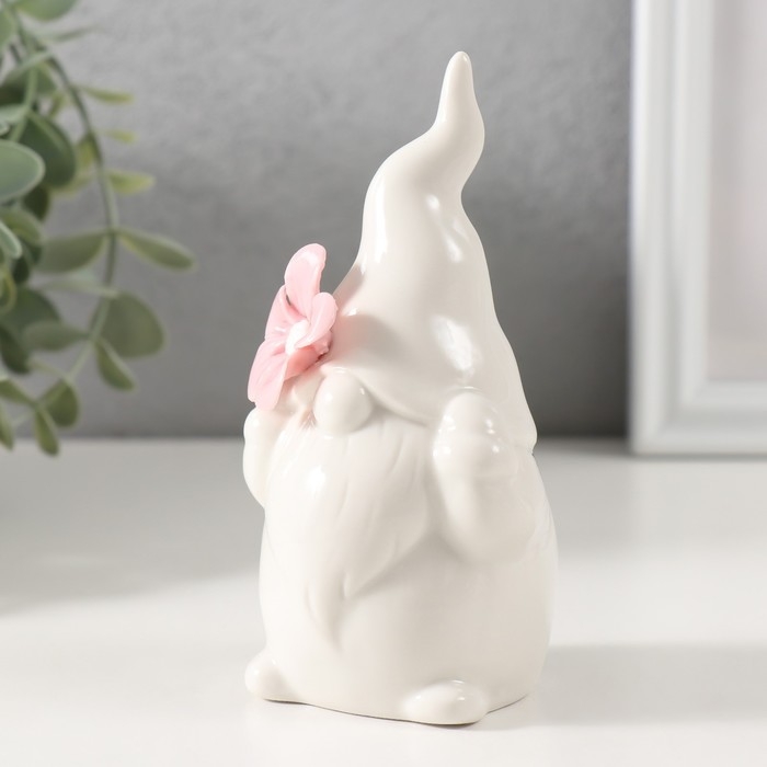 Сувенир керамика "Гномик белый с розовым цветком" 6,1х5,8х11,6 см
