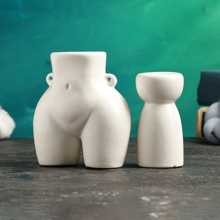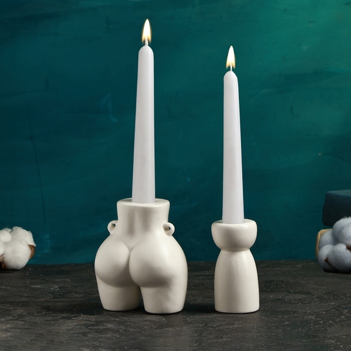 Набор подсвечников "Марта и Лунд" белый глянец, 2шт/4х8см/10х8см
