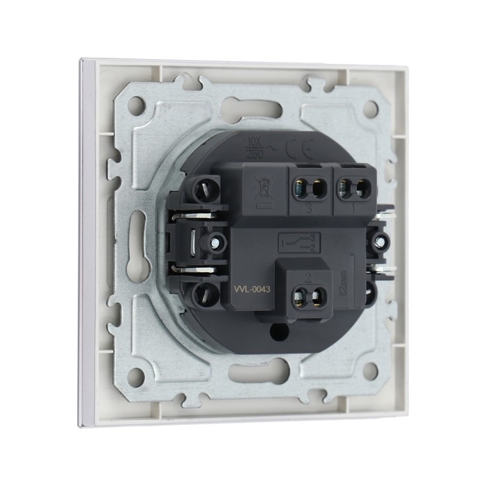 Выключатель проходной TOT Glossy Glass, 10 А, 1 клавиша, скрытый, стекло, серебристый
