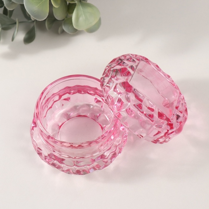 Шкатулка стекло "Лёд" прозрачная розовая 7х7х5 см
