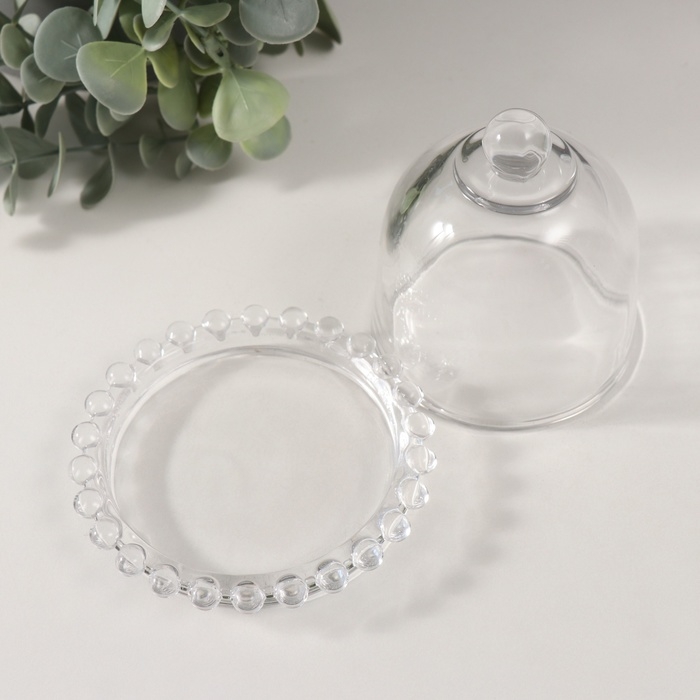 Подсвечник стекло на 1 свечу "Купол с капельками" прозрачный 9,5х9,5х8,5 см