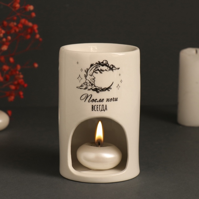 Аромалампа керамика "После ночи всегда наступает рассвет" белая 7,2х7,2х11,6 см