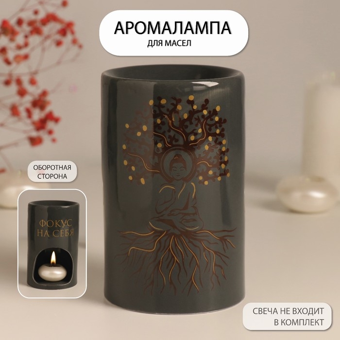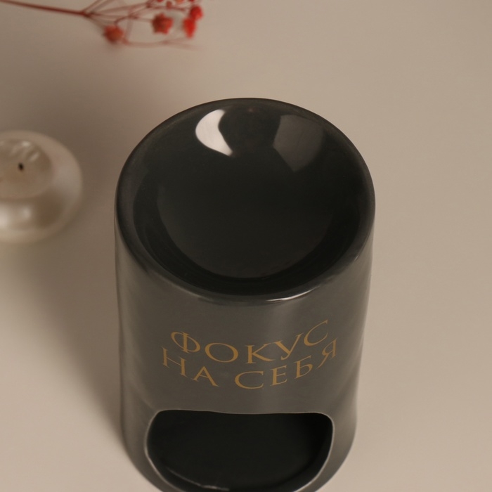 Аромалампа керамика "Фокус на себя" серая с золотом 7,2х7,2х11,6 см