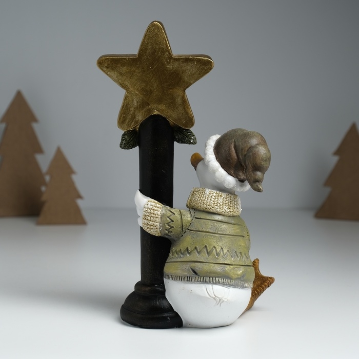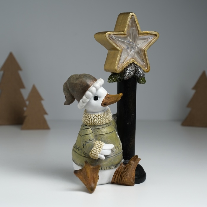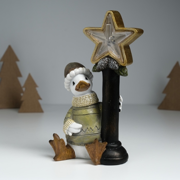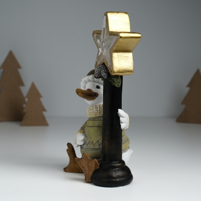 Сувенир полистоун свет "Гусь в свитере у фонарного столба со звездой" 12,5х9х20,3 см