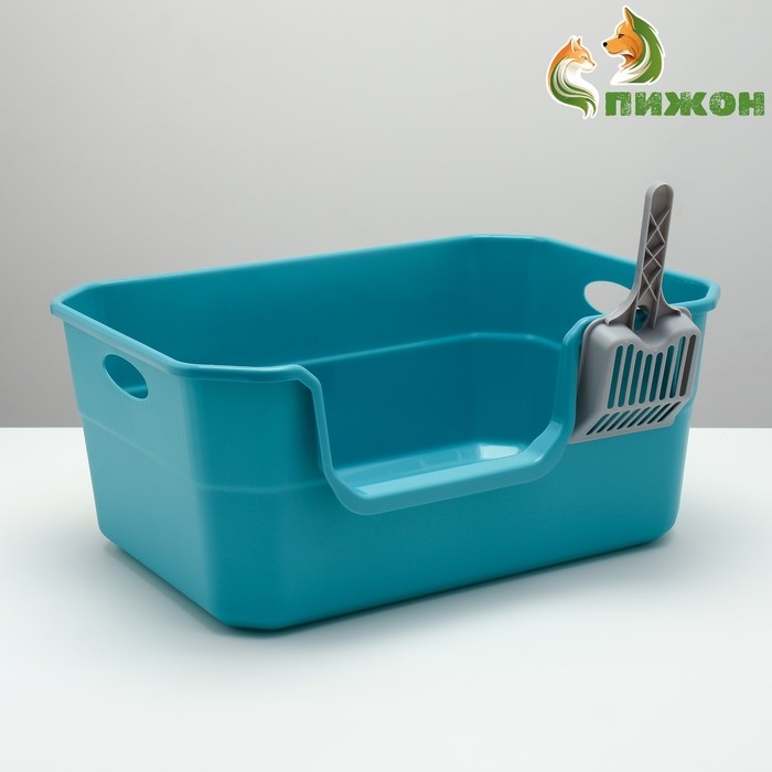 Туалет открытый с боковым входом с совком и фильтром, 50 х 35 х 24 см, синий