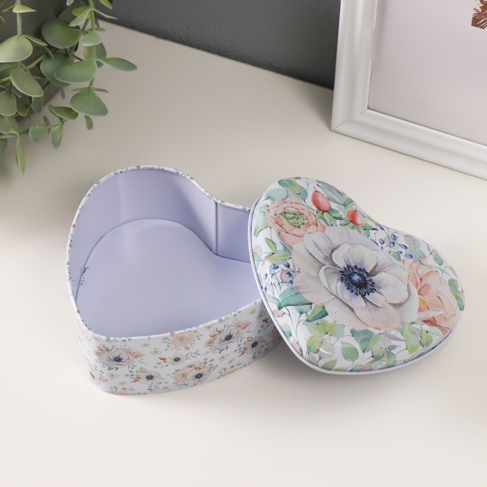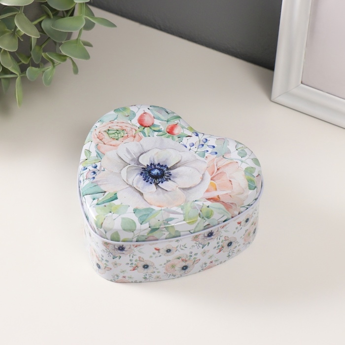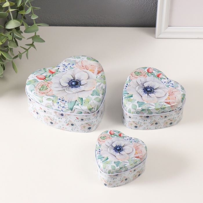 Шкатулка металл сердце "Цветы" набор 3 шт 10,5х12х5 см