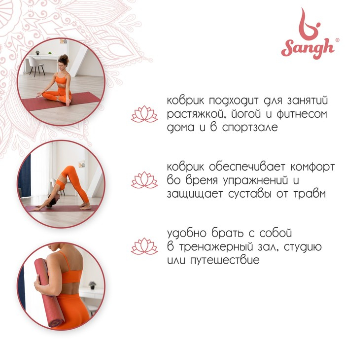 Коврик для йоги Sangh, 173х61х0,3 см, цвет розовый