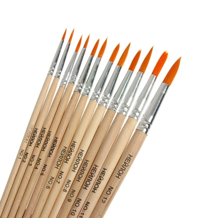 Набор кистей нейлон 12 штук: № 1, 2, 3, 4, 5, 6, 7, 8, 9, 10, 11, 12, круглые