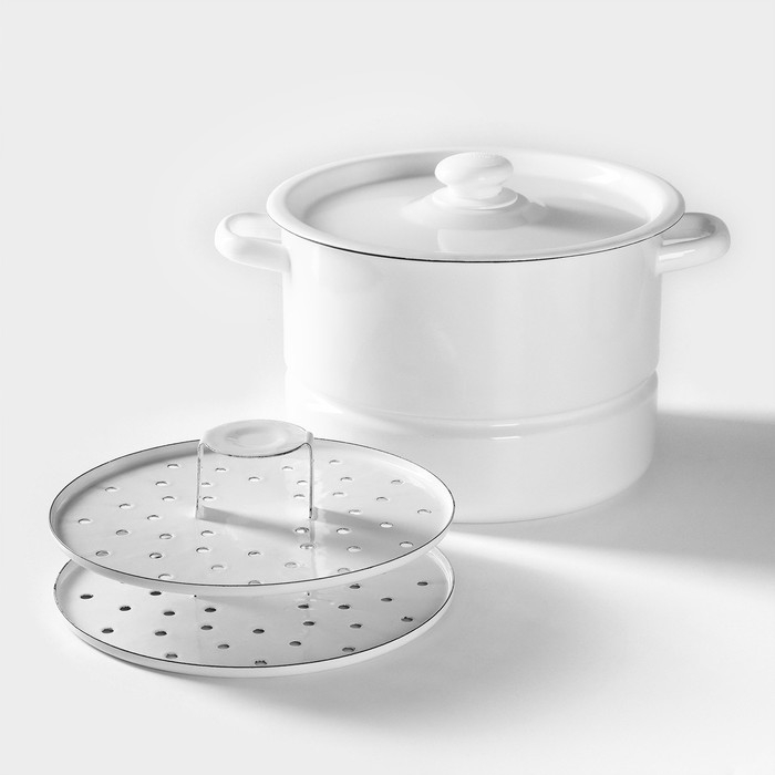 Мантоварка эмалированная «Позница», 7,5 л, 2 вставки, цвет белый
