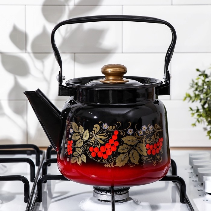 Чайник эмалированный «Рябина», 2,3 л, цвет красно-чёрный, деколь МИКС