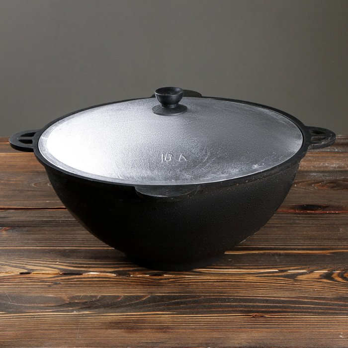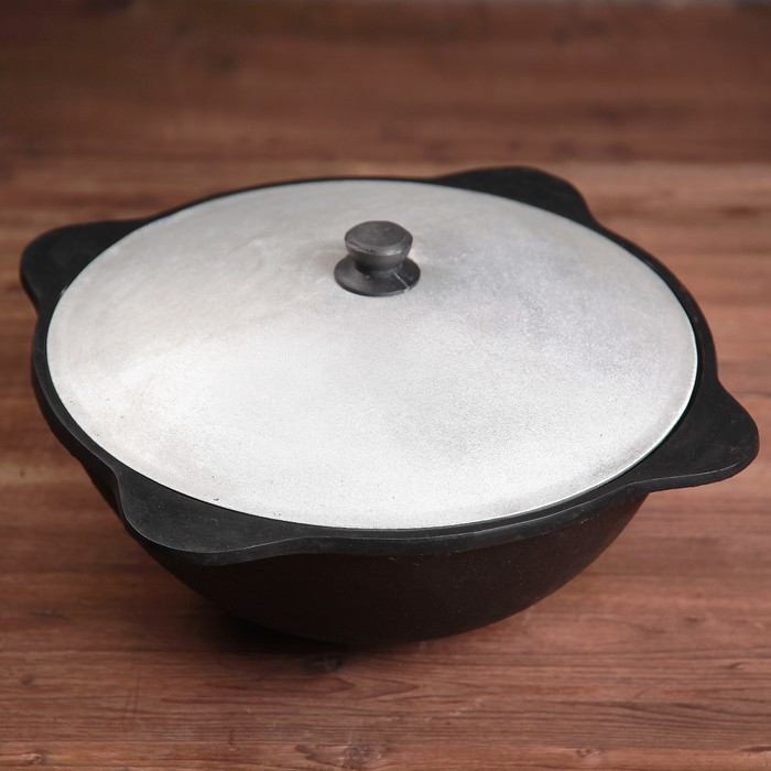 Казан чугунный, 10 л, плоское дно, алюминиевая крышка