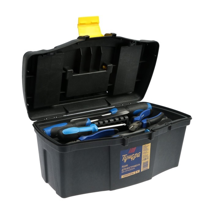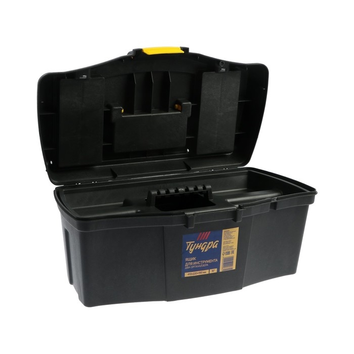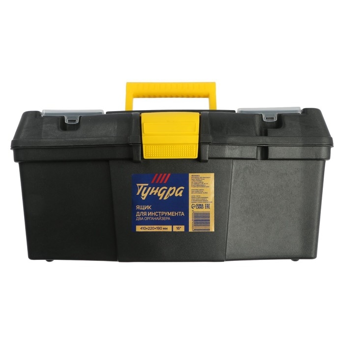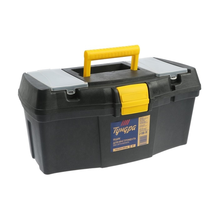 Ящик для инструмента ТУНДРА, 16", 410 х 220 х 190 мм, пластиковый, два органайзера