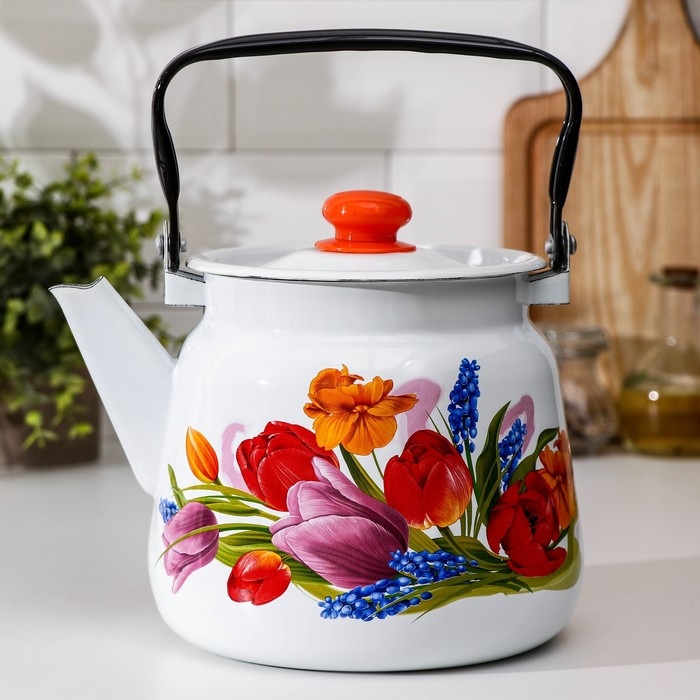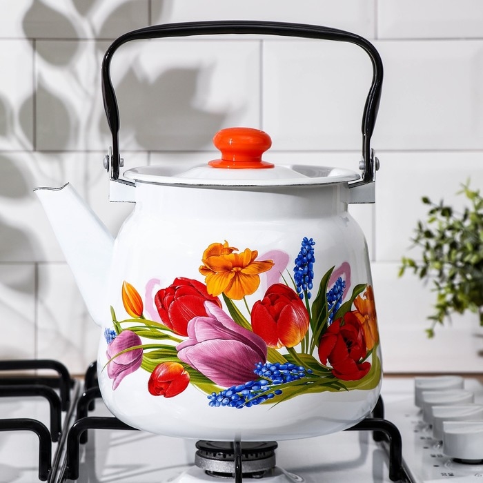 Чайник эмалированный «Тюльпан Май», 3,5 л, цвет белый