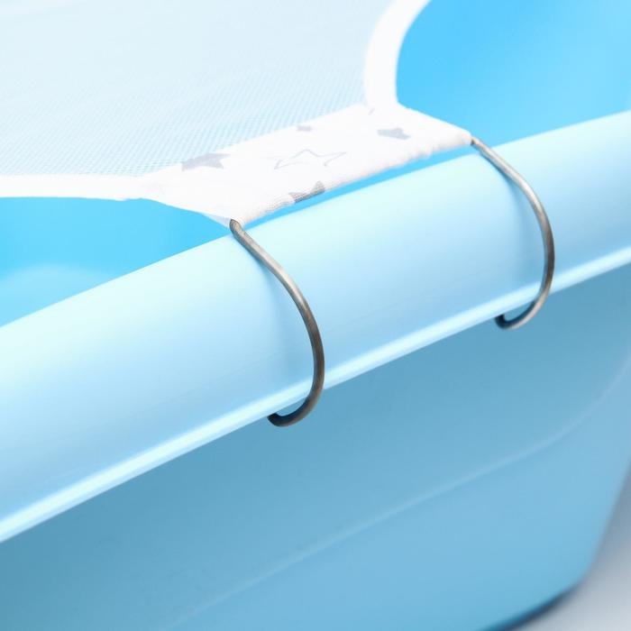 Гамачок обеспечивает комфортное и надёжное положение ребёнка во время водных процедур. Изделие крепится на ванночку за крючки, поддерживает кроху во время купания, освобождая мамины руки для мытья малыша.