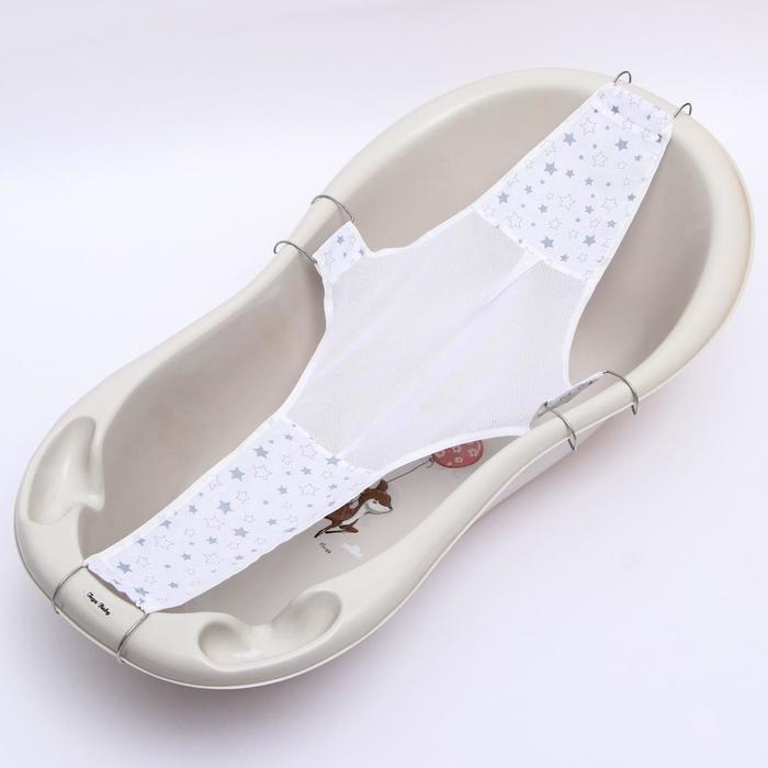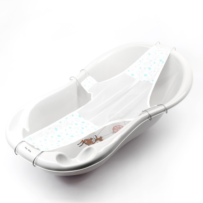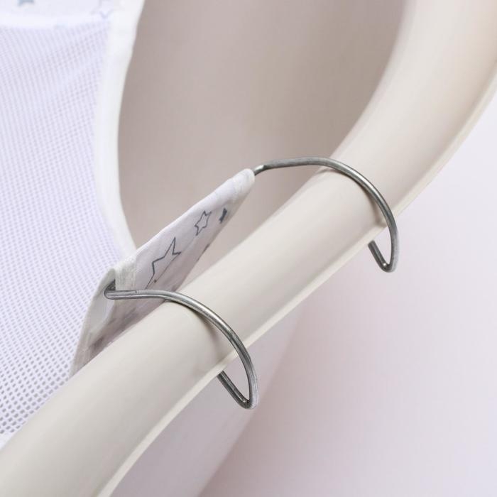 Гамачок обеспечивает комфортное и надёжное положение ребёнка во время водных процедур. Изделие крепится на ванночку за крючки, поддерживает кроху во время купания, освобождая мамины руки для мытья малыша.