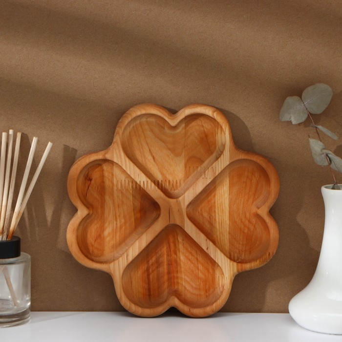 Менажница деревянная авторская Adelica «Сердце», 22×22×1,8 см, пропитана минеральным маслом, берёза