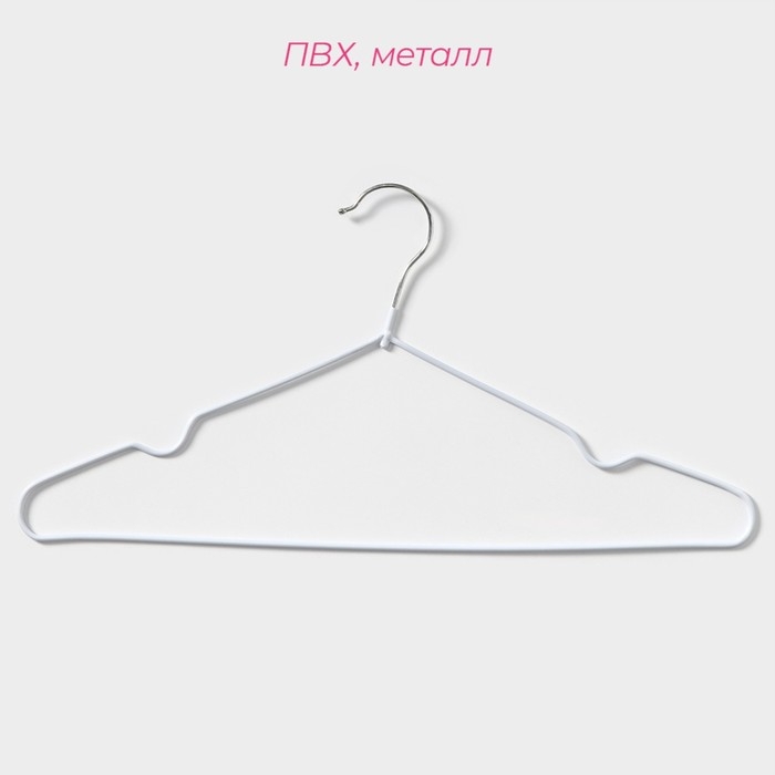 Вешалка-плечики с антискользящим ПВХ покрытием – незаменимая вещь в каждом шкафу. Специальное покрытие вешалки не даёт одежде соскальзывать. Классическая форма с перекладиной для брюк и выемкой для одежды с бретельками позволяет использовать вешалку практически для любой одежды. Тонкие металлические плечики не займут много места в вашем шкафу и помогут разместить всю одежду.