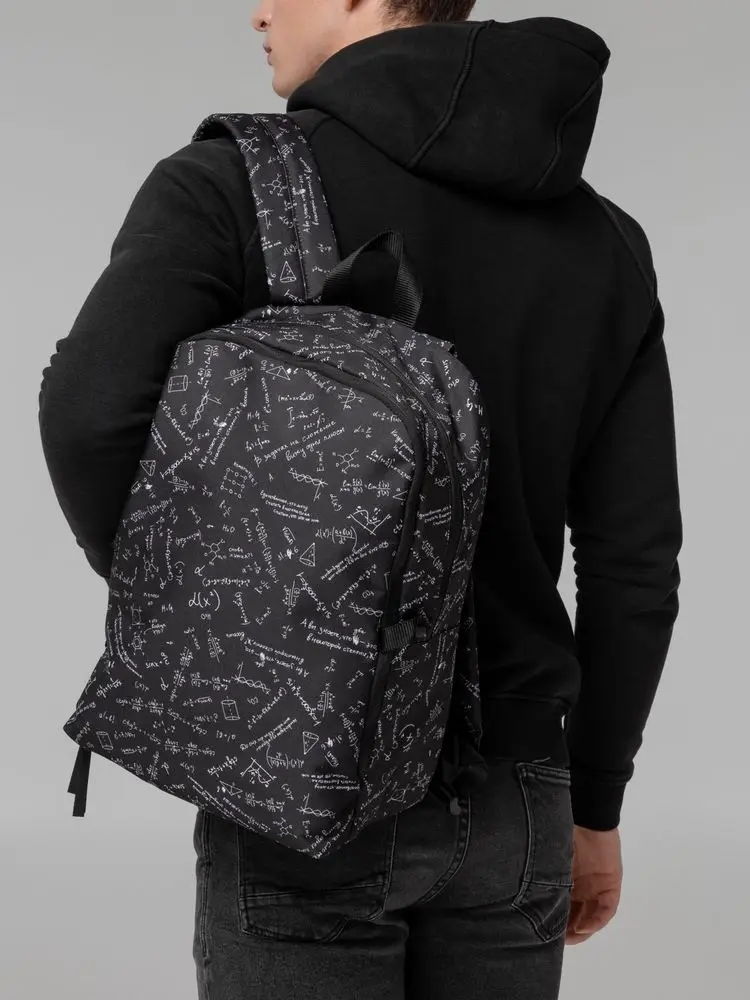 Рюкзак с девизом: «Единственное, что могу считать в математике, — считаю, что это не мое». Судя по размеру, вмещает энное количество вещей. Подтверждение этому можно находить снова и снова.