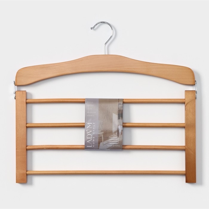 Плечики - вешалка для брюк и юбок LaDо́m Bois, 38,5×1,2×34,3 см, деревянная сорт А, многоуровневая, широкие плечики