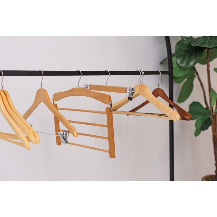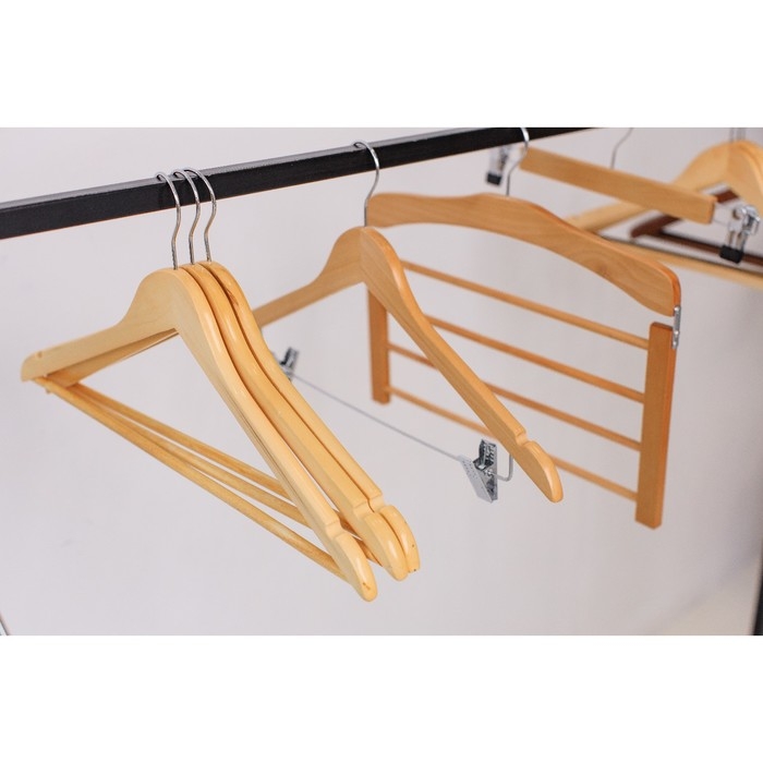 Плечики - вешалки для брюк и юбок Доляна, 45×27 см, 3 шт, с зажимами, деревянные сорт С, широкие плечики
