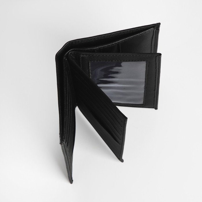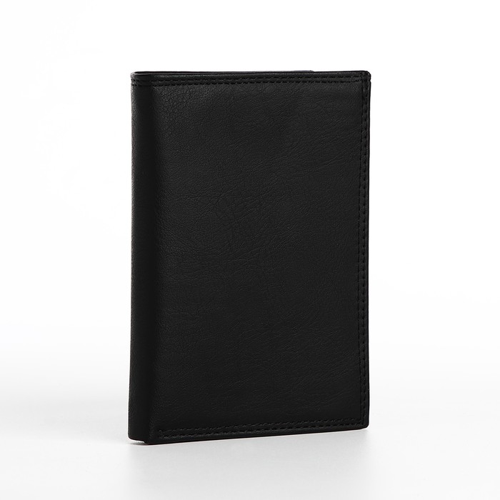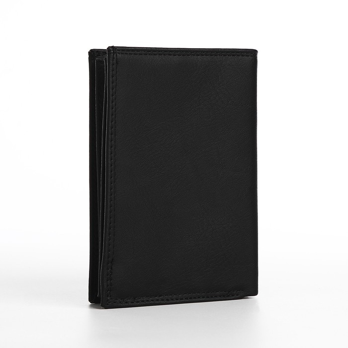 Портмоне мужское без застёжки, 3 в 1, отдел автодокументов, паспорта, карт, купюр, цвет чёрный