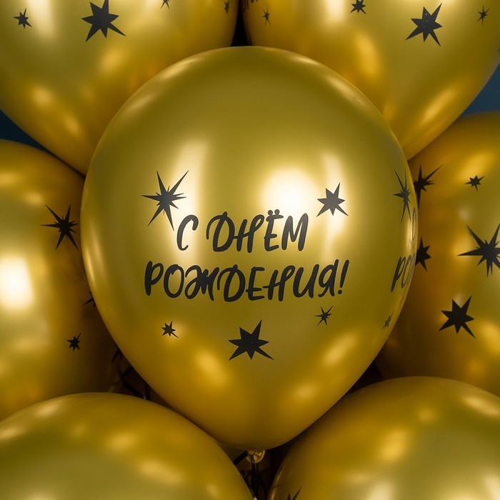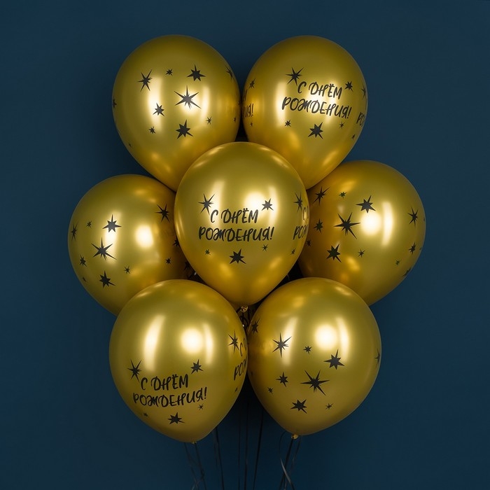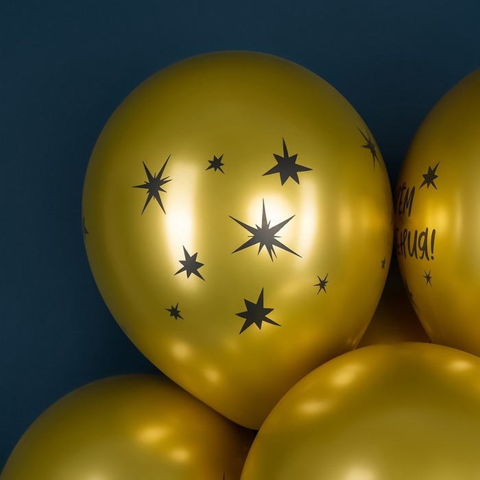 Шар латексный 12" «С Днём Рождения! Звёзды», золото, 4 ст., хром, набор 25 шт., МИКС
