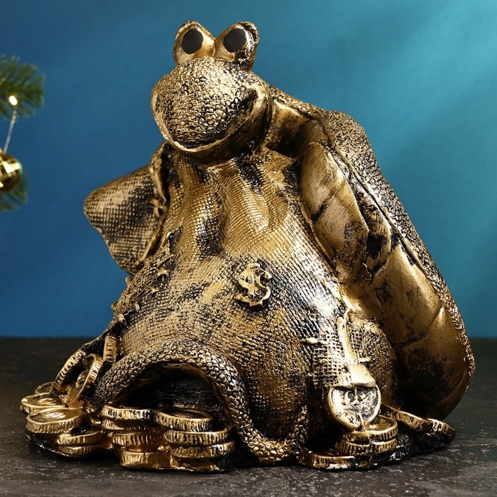 Копилка "Змея с мешком " черное золото, 25х27х23см