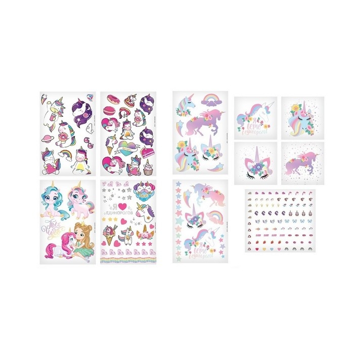 Набор тату «Единороги», с наклейками на ногти