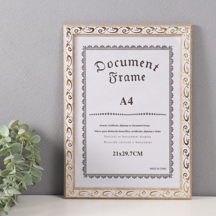 Фоторамка пластик формат А4 "Золотой вьюнок на белом" 1,1х23,8х32,5 см