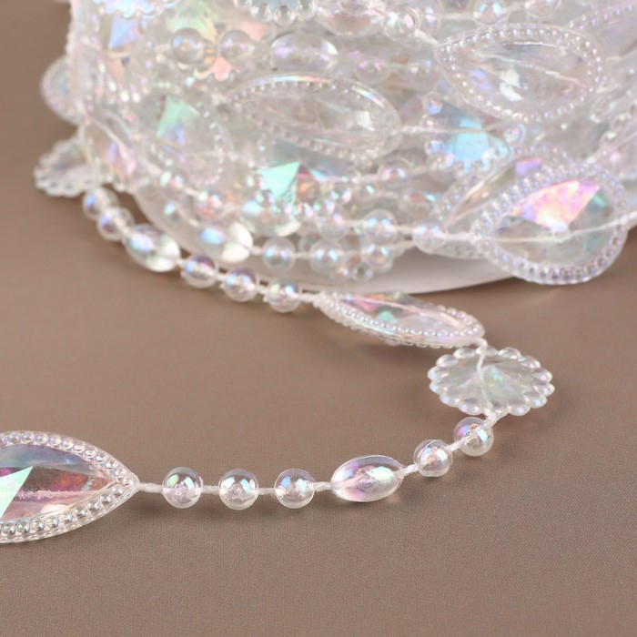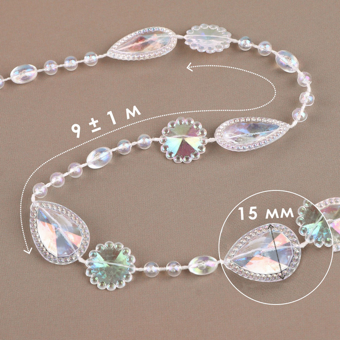 Бусы на нитях, с голографией, 15 мм, 9 ± 1 м, цвет прозрачный