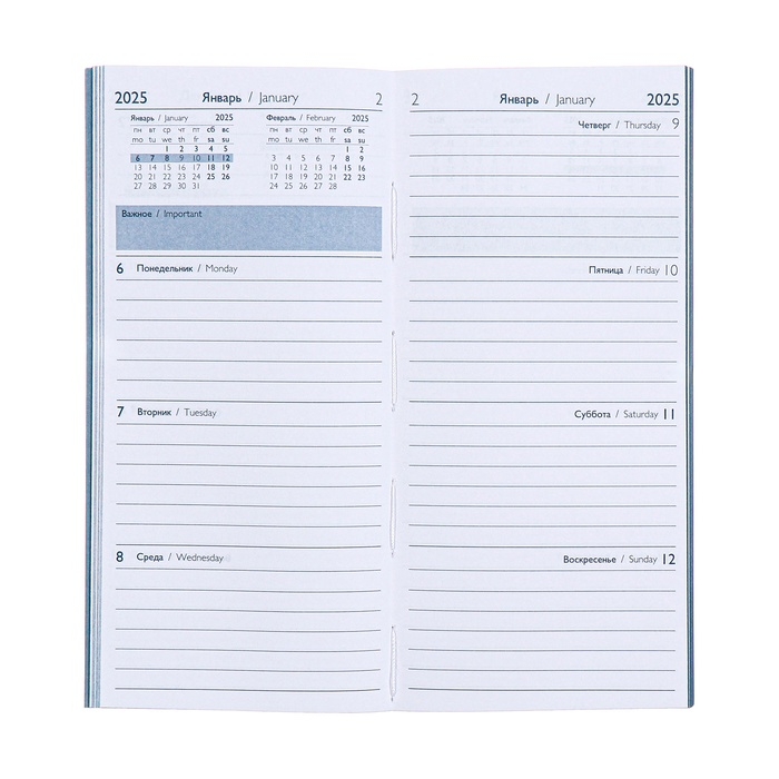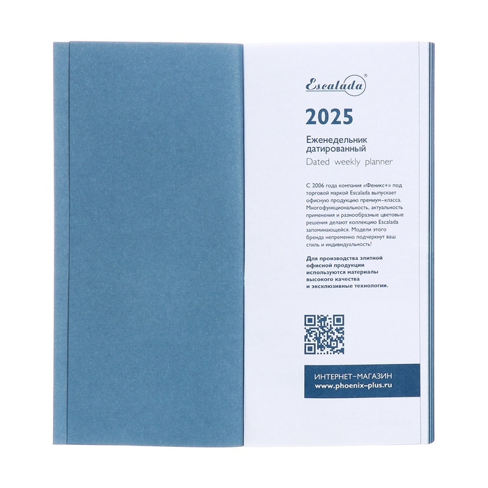 Еженедельник датированный 2025 года, 80х165 мм, 64 листа ESCALADA, мягкая обложка из искусственной кожи, блинтовое тиснение, блок 70 г/м², голубой