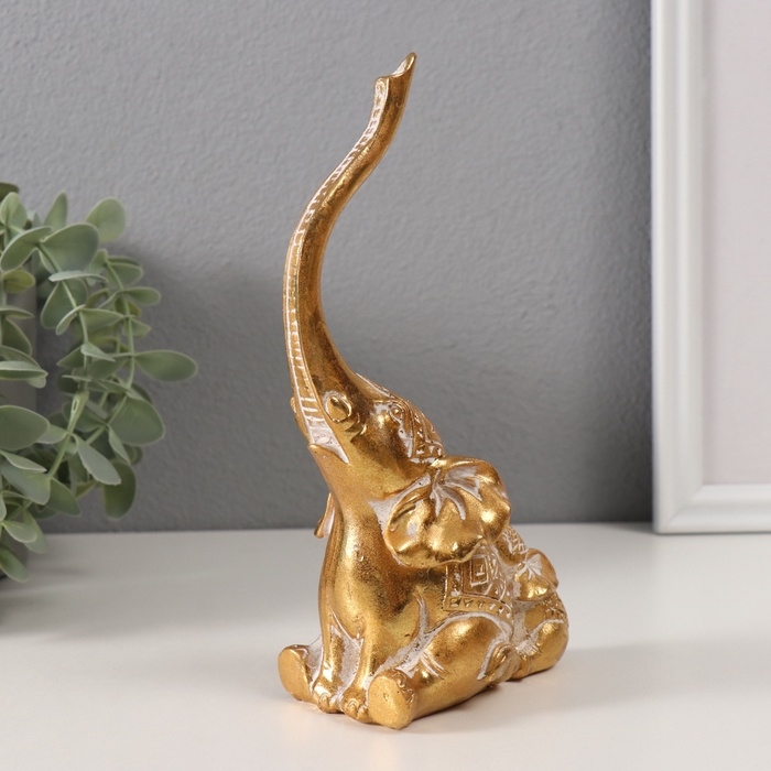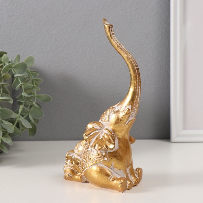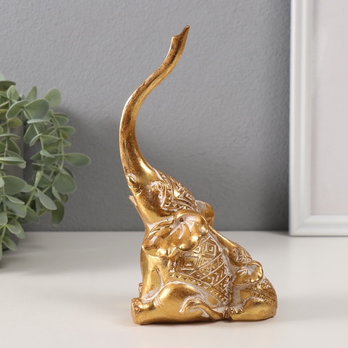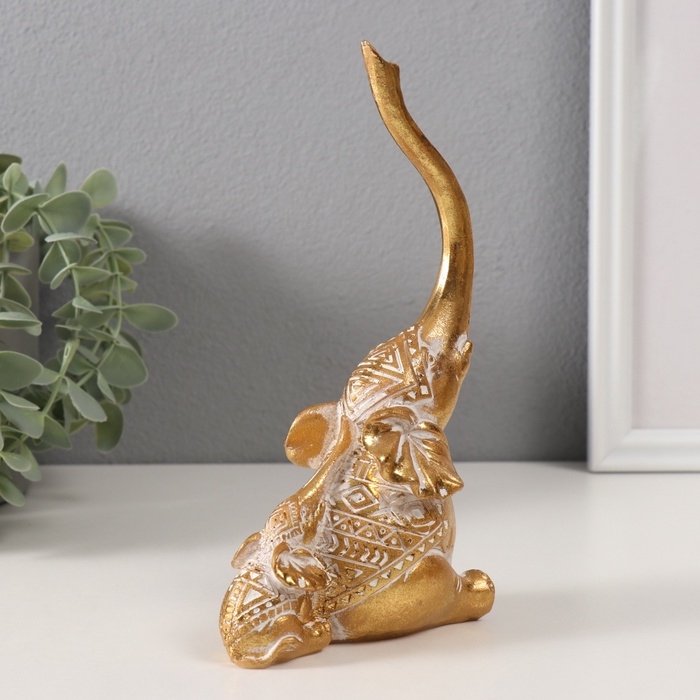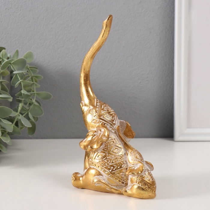 Сувенир полистоун "Слон и слонёнок. Индейские узоры" золото 10,3х6,6х18,8 см