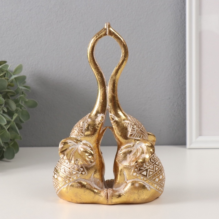 Сувенир полистоун "Слоны - прикосновение. Индейские узоры" золото 13х6,7х19,8 см