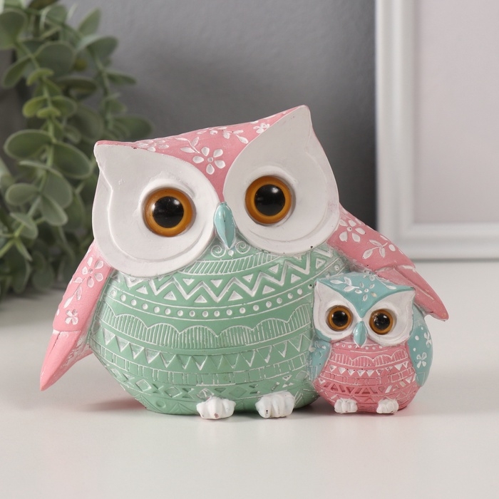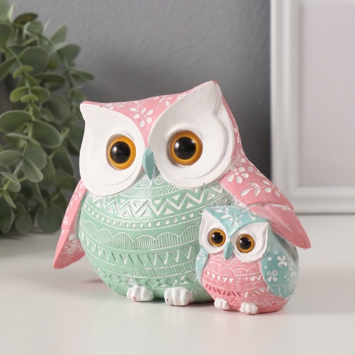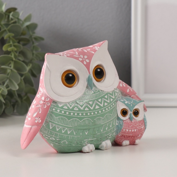 Сувенир полистоун "Цветной филин с птенцом" геометрические узоры 15,2х6х11 см