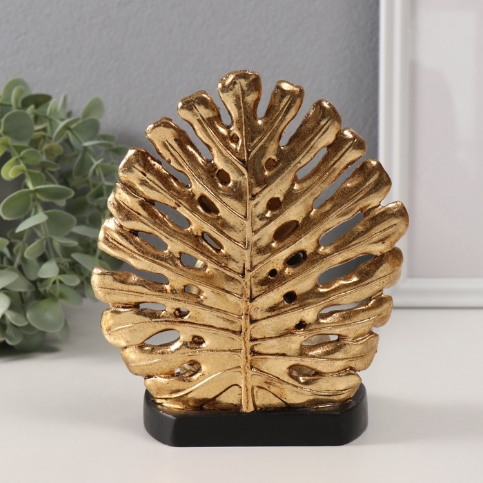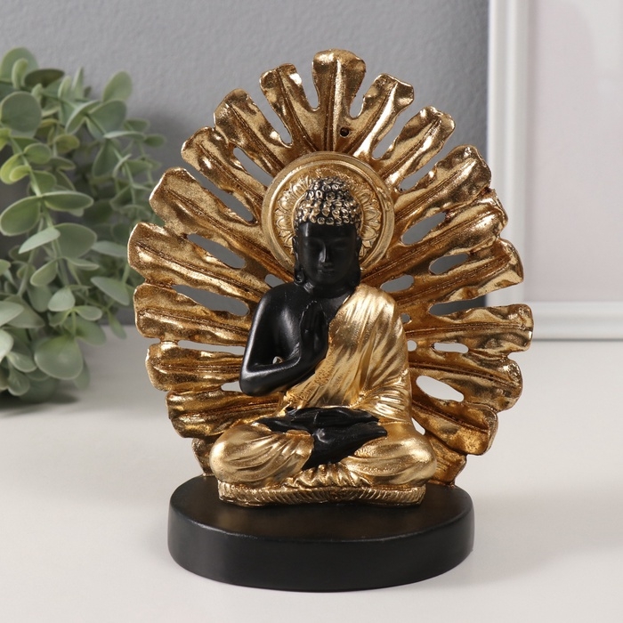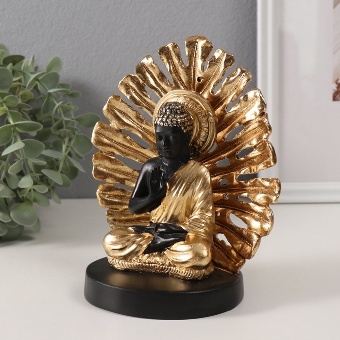 Сувенир полистоун "Будда. Пальмовый лист" золото и чёрный 14,5х9х17,5 см