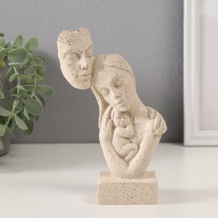 Сувенир полистоун бюст "Родители с малышом" белый в крапинку 10х5х15,5 см