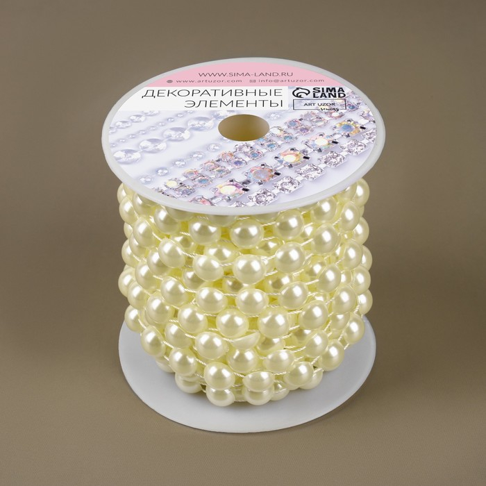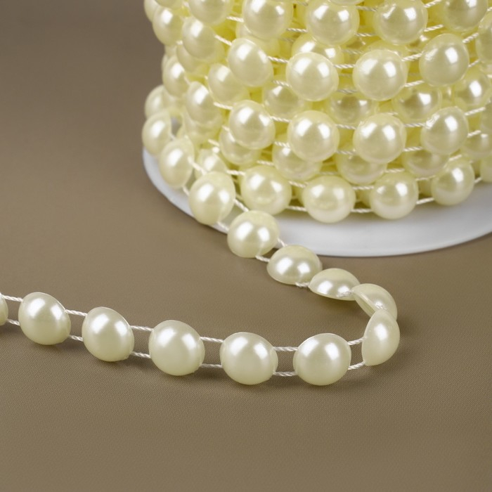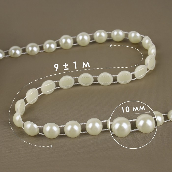 Жемчуг на нитях, плоский, 10 мм, 9 ± 1 м, цвет молочный