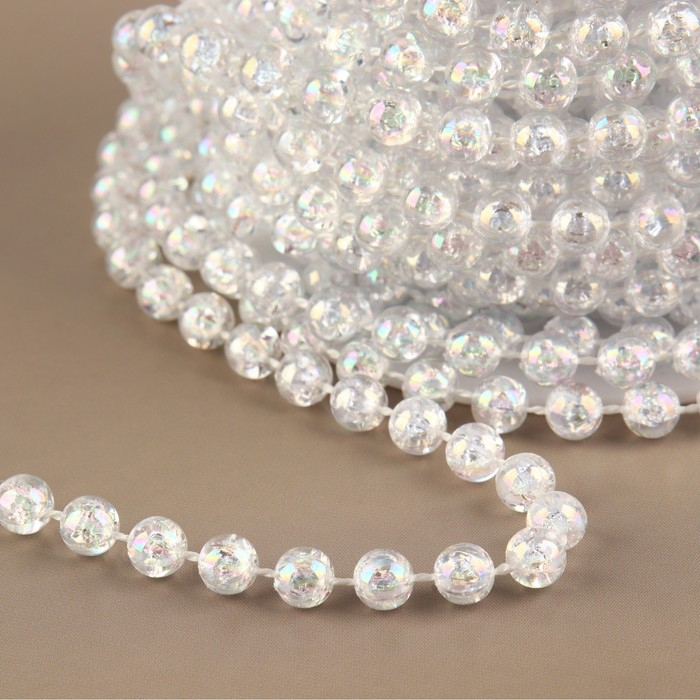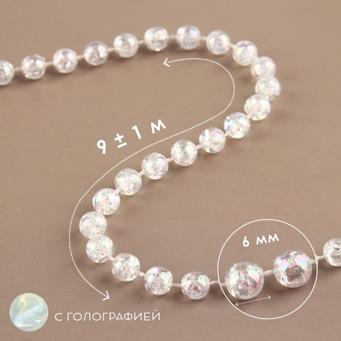 Бусы на нитях, с голографией, круглые, 6 мм, 9 ± 1 м, цвет прозрачный